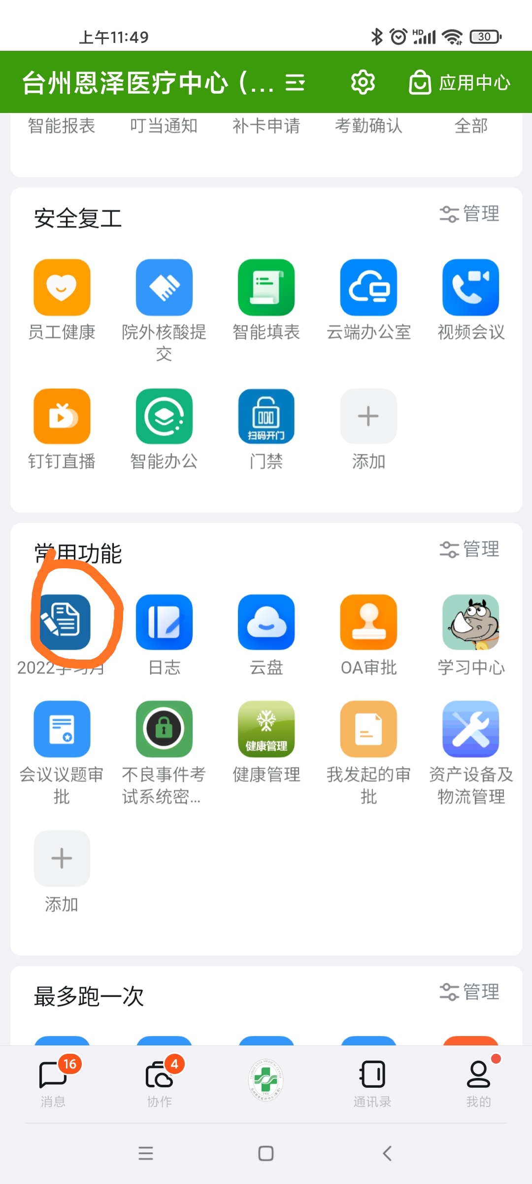 一、手机上打开钉钉,点击工作,找到协同平台